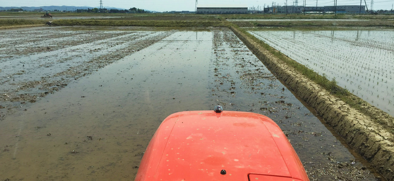 それから田んぼに水を入れてさらに細かく耕し、土がドロドロの状態で平らになったら準備完了です。